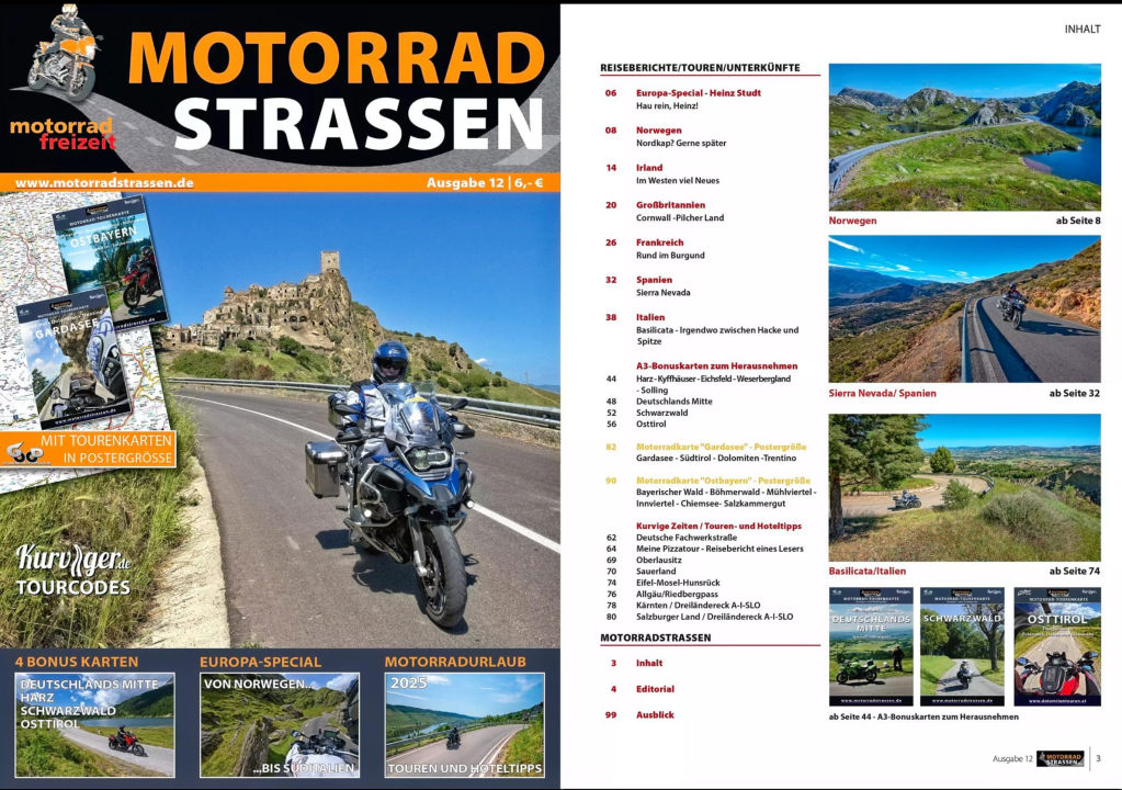 Nachzulesen im MOTORRADSTRASSEN Magazin 12/24 – vereinzelt vielleicht noch am gut sortierten Kiosk zu finden, garantiert aber bei Readly und in prallem Hochglanz. Schaut rein und genießt …